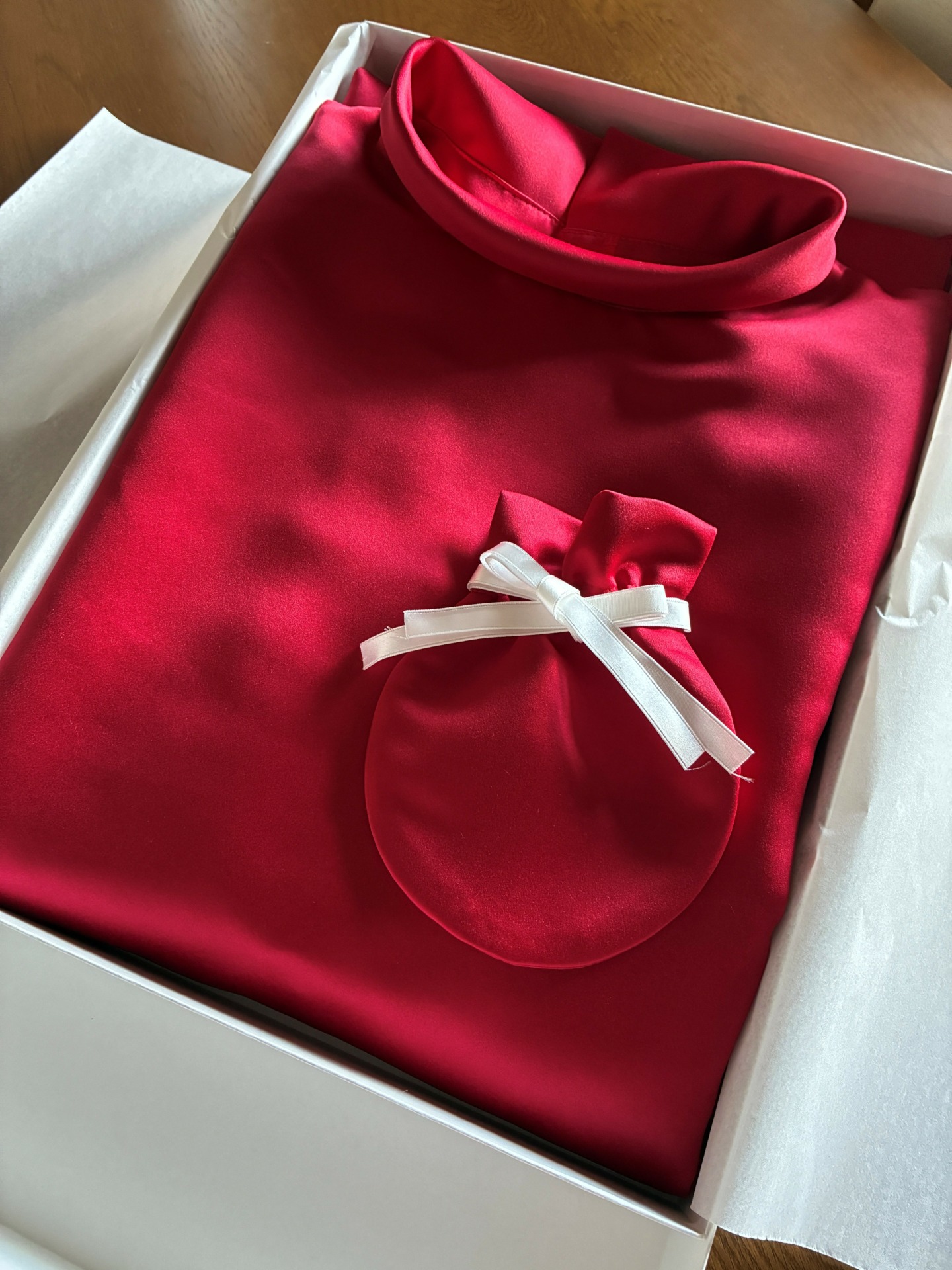 姉妹で話し合い、想いを託せる赤のエンディングドレス(死装束)をお誂えいただきました。